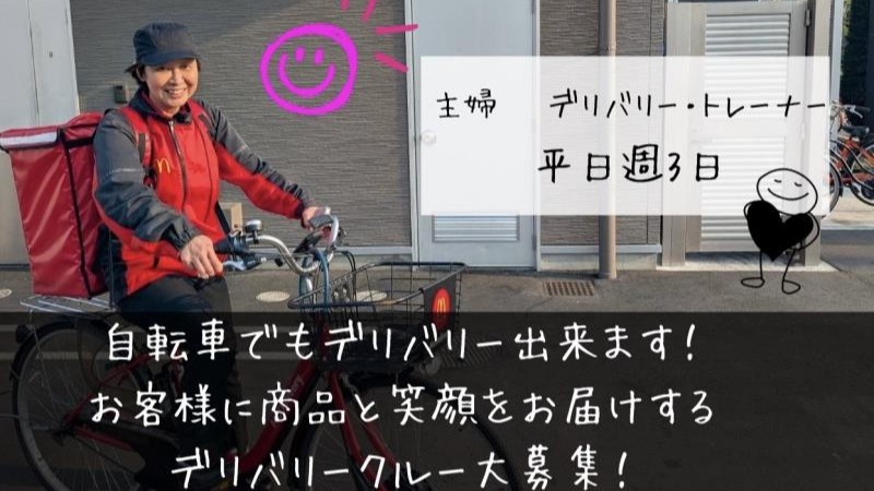 マクドナルドでは、アルバイト・パートスタッフを「クルー」と呼んでいます。「デリバリークルー」は、出来立ての商品を店舗からお客様にお届けするお仕事です。